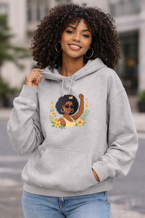Black Girl Magic Hoodie — Afro Woman Crowned with Sunflowers Sweatshirt