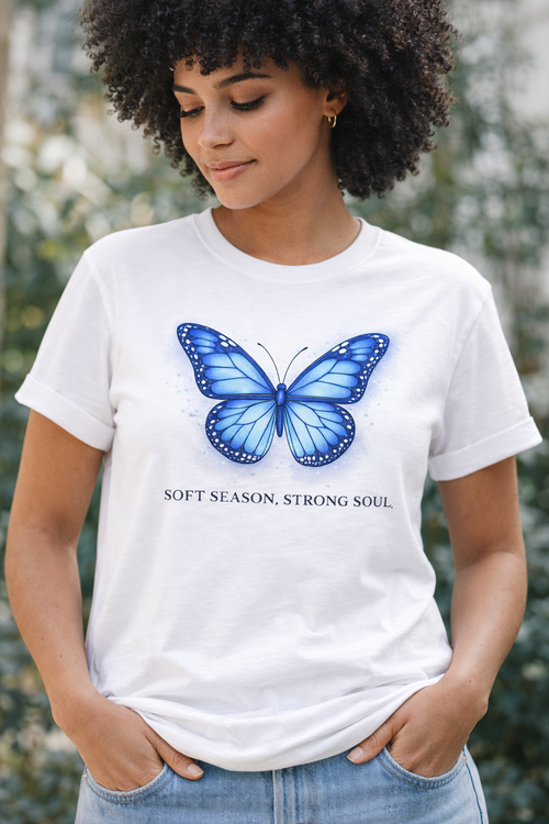 T-Shirt — "Focus on the Good" Blue Floral Positive Message Tee -